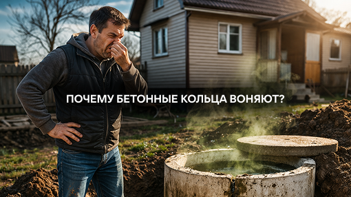 За последние десятки лет я переделал десятки старых канализаций на участке. И почти всегда одинаковая история. Человек ставит бетонные кольца, всё работает нормально несколько лет... А потом начинаются проблемы. Обычно это происходит через 2-3 года после установки. Приезжаю на участок: открываю люк и вижу.. Разберёмся, почему бетонные кольца начинают вонять и можно ли это исправить. Бетонные кольца по сути не являются полноценной системой очистки. Чаще всего это просто накопительная яма, в которой отходы постепенно разлагаются. Со временем это приводит к нескольким проблемам. Бетонные кольца устанавливаются друг на друга, но идеальной герметичности между ними нет. Со временем: Подробнее об этом я рассказывал в посте «почему бетонные кольца начинают течь» Через эти щели запах начинает выходить наружу и распространяться по участку. Особенно часто это происходит весной, когда уровень грунтовых вод повышается. В классических кольцах нет системы биологической очистки. Что происходит внутри: