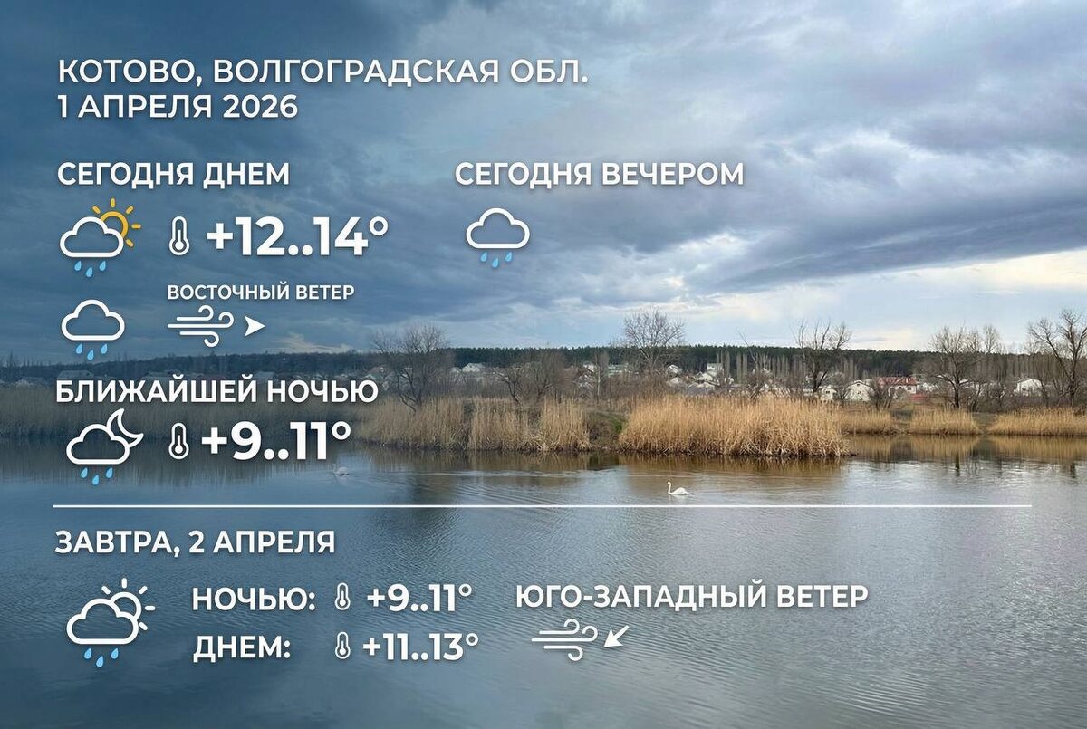 ⛅️ Сегодня днем ожидается переменная облачность, небольшой дождь, +12..14°, ветер восточный, умеренный. Атмосферное давление в пределах нормы. Геомагнитное поле спокойное. Вечером - небольшой дождь. Ближайшей ночьюпеременная облачность, небольшой дождь, температура +9..11°. Атмосферное давление в пределах нормы. 2 апреля, в течение суток ожидается переменная облачность, небольшой дождь; ночью +9..11°, днем +11..13°, ветер юго-западный, умеренный.
