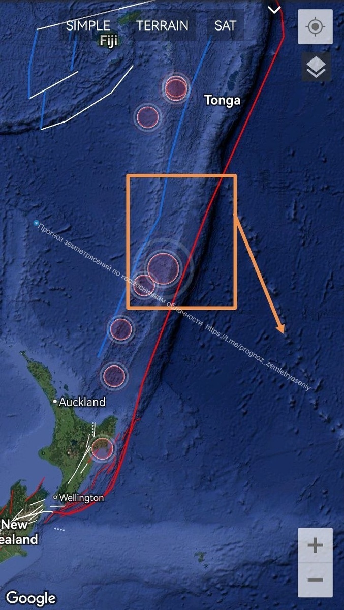 На плите Кермадек также сохраняется вероятность землетрясения М6+