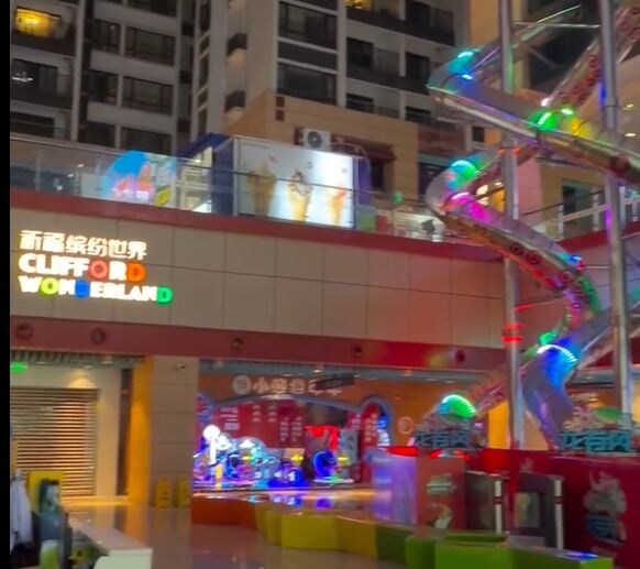 В ролике видно, что запечатленное волгоградкой больше похоже на дорогой детский аттракцион, нежели на обычную детскую площадку в понимании россиян. Практически все детские аттракционы имеют подсветку. Над прощадкой возвышается гигантский экран, а детские горки похожи на горки в ак