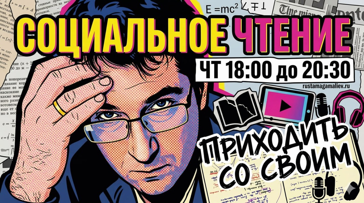) … Друзья, до 14 апреля я запланировал для вас несколько открытых форматов: “коллективное заметковедение”, “социальное чтение”, вчера вот я отвечал на вопросы в формате “Спроси что хочешь”. Все эти движи я провожу для продвижения последнего в этом году потока “Как (не)читать книги” (следующий старт будет или в сентябре, или в октябре). В этот четверг, 3 апреля, у нас будет открытая встреча в рамках условного проекта “Социальное чтение”, давно хотел этот формат попробовать для открытых групп и, может быть, сделать его регулярным. “Социальное чтение” – это формат открытых чтений, на которые каждый приходит со “своим” (книгой, статьей, видосиком, подкастом), мы читаем/смотрим/слушаем 20 минут, отмечаем запомнившееся, ценное для нашей профессиональной деятельности, и потом в малой группе обсуждаем – рассказываем, слушаем, задаём вопросы. В таком формате от участника требуется только одно: думать вслух, а в результате вы уйдёте с двумя “артефактами”: 1. С понятным утверждением автора