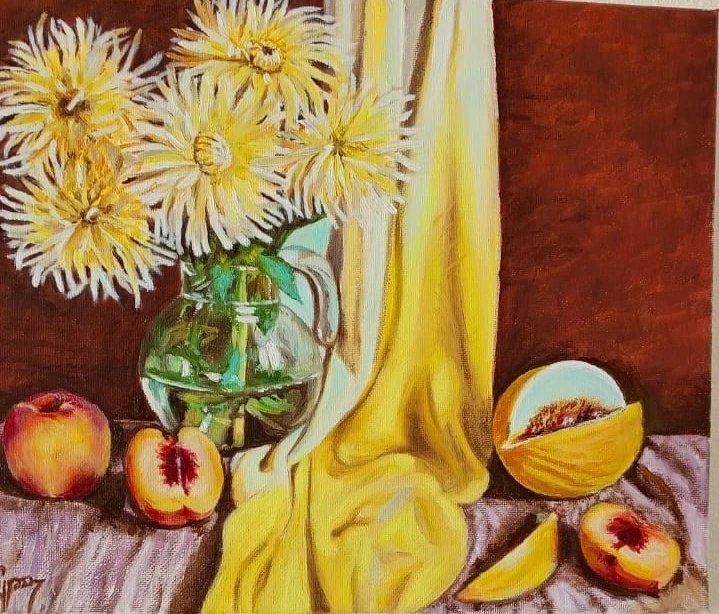 1600руб + доставка Курносова Галина картина Жёлтые хризантемы холст на подрамнике покрыта лаком, масло 25*30см