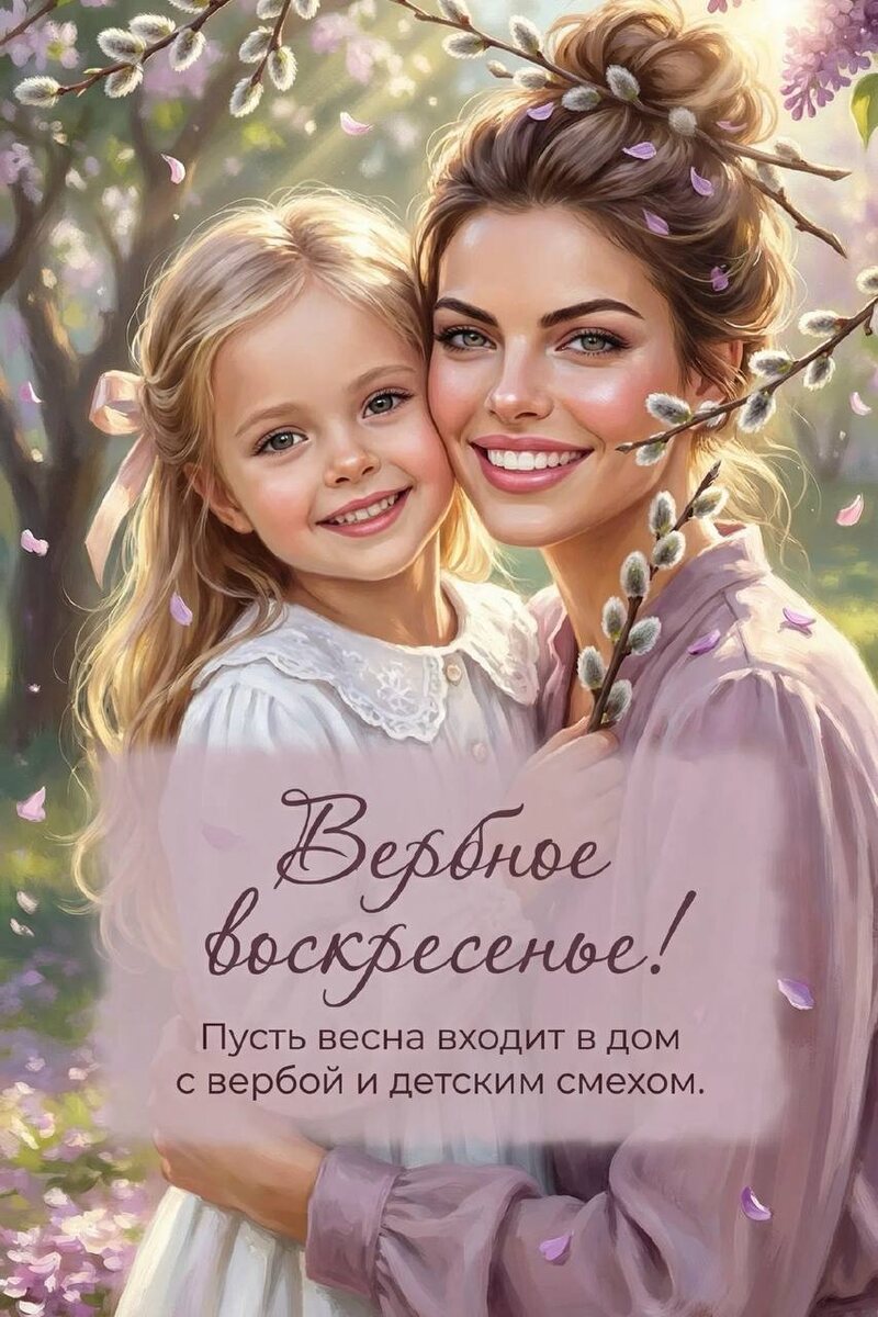 1) Заходим в БОТ ВК или БОТ ТГ 2) Жмем Выбор модели => Nano Banana PRO/Nano Banana 2 3) Добавляем свой фото (важно фото БЕЗ ретуши и любой обработки и фильтров), вставляем этот ПРОМТ: Техническая инструкция (Stories Safe Zone) формат 9:16: Текстовый блок по центру кадра по горизонтали. Центр блока на 55% от верха. Блок занимает ~18% высоты. Боковые отступы — 10%. Текст размещён на полупрозрачной дымке нежно-сиреневого оттенка с мягкой растушёвкой краёв. Описание сцены: Вертикальная full-bleed иллюстрация в стиле digital painting (масло, пастозные мазки). Стиль semi-realistic, яркий, цветущий. Локация — старый сад, где цветут ветви вербы с пушистыми почками, кусты сирени и первые весенние цветы. Солнечные лучи пробиваются сквозь ветви, создавая пятнистые тени на траве. Земля усыпана лепестками и пушистыми почками вербы. Эффекты: мягкое золотистое освещение, парящие в воздухе пушистые «котики» вербы и лепестки, лёгкая дымка, насыщенные весенние цвета. Персонажи: Крупный план мамы с мален