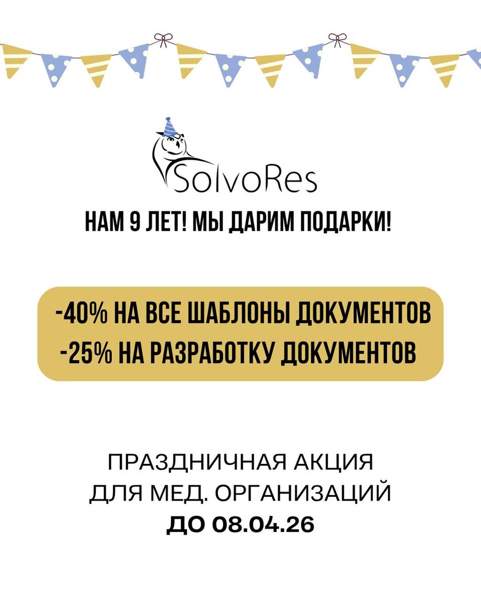 ! ΠΠ° ΡΡΠΎ Π²ΡΠ΅ΠΌΡ ΠΌΡ ΠΏΡΠΎΡΠ»ΠΈ Π±ΠΎΠ»ΡΡΠΎΠΉ ΠΏΡΡΡ ΠΈ ΠΏΠΎΠΌΠΎΠ³Π»ΠΈ ΠΌΠ½ΠΎΠ³ΠΈΠΌ ΠΌΠ΅Π΄ΠΈΡΠΈΠ½ΡΠΊΠΈΠΌ ΠΎΡΠ³Π°Π½ΠΈΠ·Π°ΡΠΈΡΠΌ Π²ΡΡΡΡΠΎΠΈΡΡ Π³ΡΠ°ΠΌΠΎΡΠ½ΡΡ ΡΠ°Π±ΠΎΡΡ! Π Π²ΡΡ ΡΡΠΎ β Π±Π»Π°Π³ΠΎΠ΄Π°ΡΡ Π²Π°ΡΠ΅ΠΌΡ Π΄ΠΎΠ²Π΅ΡΠΈΡ π€ Π ΡΠ΅ΡΡΡ ΡΡΠΎΠ³ΠΎ Π·Π°ΠΏΡΡΠΊΠ°Π΅ΠΌ Π°ΠΊΡΠΈΡ: β ΡΠΊΠΈΠ΄ΠΊΠ° 25% Π½Π° ΠΈΠ½Π΄ΠΈΠ²ΠΈΠ΄ΡΠ°Π»ΡΠ½ΡΡ ΡΠ°Π·ΡΠ°Π±ΠΎΡΠΊΡ Π΄ΠΎΠΊΡΠΌΠ΅Π½ΡΠΎΠ² β ΡΠΊΠΈΠ΄ΠΊΠ° 40% Π½Π° Π³ΠΎΡΠΎΠ²ΡΠ΅ ΡΠ°Π±Π»ΠΎΠ½Ρ Π² ΠΌΠ°Π³Π°Π·ΠΈΠ½Π΅ Π΄ΠΎΠΊΡΠΌΠ΅Π½ΡΠΎΠ² β ΠΡΠ»ΠΈ Π²Ρ Π΄Π°Π²Π½ΠΎ ΠΎΡΠΊΠ»Π°Π΄ΡΠ²Π°Π»ΠΈ Π²ΠΎΠΏΡΠΎΡ Ρ Π΄ΠΎΠΊΡΠΌΠ΅Π½ΡΠ°ΡΠΈΠ΅ΠΉ β ΡΠ΅ΠΉΡΠ°Ρ Π»ΡΡΡΠΈΠΉ ΠΌΠΎΠΌΠ΅Π½Ρ Π΅Π³ΠΎ Π·Π°ΠΊΡΡΡΡ Π²ΡΠ³ΠΎΠ΄Π½ΠΎ β³ ΠΠΊΡΠΈΡ Π΄Π΅ΠΉΡΡΠ²ΡΠ΅Ρ Π΄ΠΎ 08.04.2026 π© ΠΠ»Ρ ΠΈΠ½Π΄ΠΈΠ²ΠΈΠ΄ΡΠ°Π»ΡΠ½ΠΎΠΉ ΡΠ°Π·ΡΠ°Π±ΠΎΡΠΊΠΈ Π½Π°ΠΏΠΈΡΠΈΡΠ΅ Π½Π°ΠΌ Π² Π»ΠΈΡΠ½ΡΠ΅ ΡΠΎΠΎΠ±ΡΠ΅Π½ΠΈΡ @Solvores π ΠΠΎΡΠΎΠ²ΡΠ΅ ΡΠ°Π±Π»ΠΎΠ½Ρ Π΄ΠΎΡΡΡΠΏΠ½Ρ Π½Π° ΡΠ°ΠΉΡΠ΅: https://www.med-reshenia.ru/ Π§ΡΠΎΠ±Ρ ΠΏΠΎΠ»ΡΡΠΈΡΡ ΡΠΊΠΈΠ΄ΠΊΡ 40%: ΠΠΎΠ±Π°Π²ΡΡΠ΅ Π½ΡΠΆΠ½ΡΠ΅ ΡΠ°Π±Π»ΠΎΠ½Ρ Π² ΠΊΠΎΡΠ·ΠΈΠ½Ρ ΠΈ Π²Π²Π΅Π΄ΠΈΡΠ΅ ΠΏΡΠΎΠΌΠΎΠΊΠΎΠ΄: 40 β ΡΠΊΠΈΠ΄ΠΊΠ° ΠΏΡΠΈΠΌΠ΅Π½ΠΈΡΡΡ Π°Π²ΡΠΎΠΌΠ°ΡΠΈΡΠ΅ΡΠΊΠΈ!