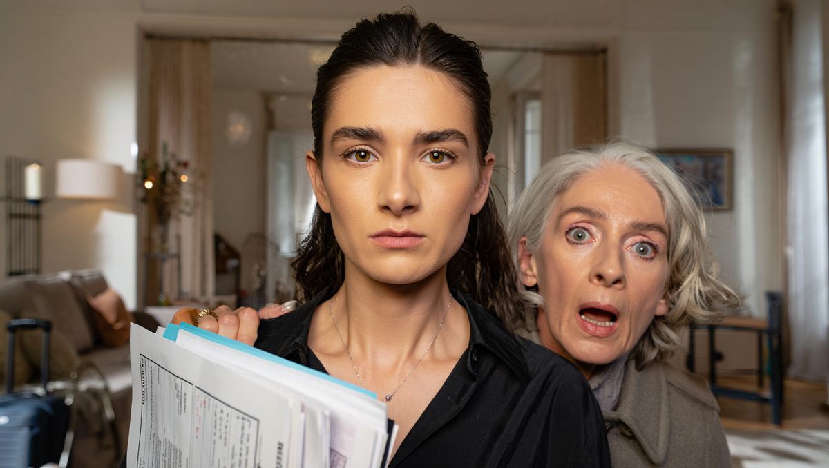 Зинаида Михайловна стояла в подъезде с видом победителя, занявшего высоту. На ней было её лучшее пальто из мохера — то самое, которое она надевала по «важным случаям». В правой руке — чемодан на колёсиках, в левой — объёмная клетчатая сумка, из которой торчала ручка сковородки.