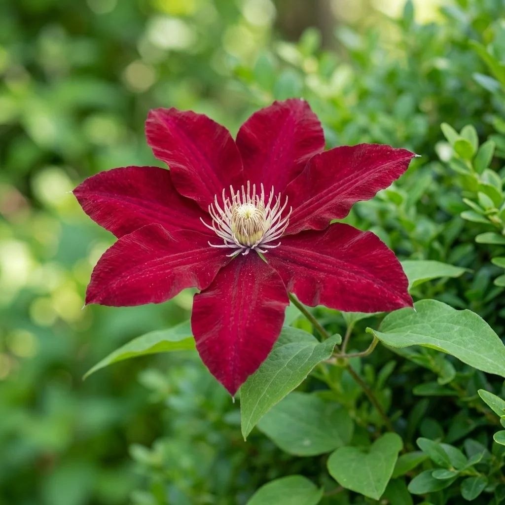 Клематис крупноцветковый сорт Ребекка ( Rebecca ) - крупные, выразительные цветы с прилистниками чистого красного цвета и кремовыми