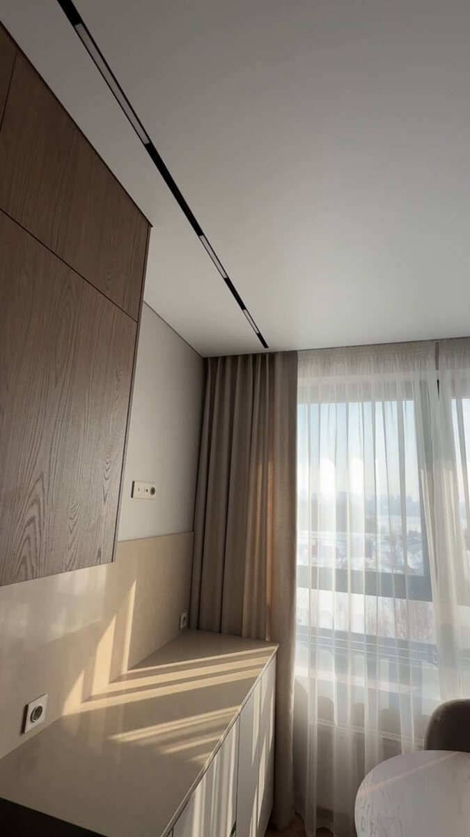 Квартира в новом доме ЖК «Уно», площадь — чуть меньше 50 м². Несмотря на компактный размер, здесь получилось сделать полноценное и удобное пространство для жизни 👇 Планировка включает: * отдельную спальню 🛏 * кухню-гостиную 🍽 * душевую 🚿 * гардеробную 👕 Теперь про наполнение. Вся техника — от Gorenje, качественная и надежная 👍 Есть встроенный холодильник, а столешница и фартук выполнены из искусственного камня — практично и красиво. Сантехника — AM.PM, хорошее соотношение цены и качества. Радиаторы оставили от застройщика, а подоконники сделали из керамогранита — долговечно и стильно. Отделка: * стены — идеально выровнены и покрашены 🎨 * потолки — натяжные с теневым примыканием и точечным светом 💡 * двери — скрытого монтажа (Волховец) 🚪 * пол — инженерная доска + керамогранит Там, где плитка — сделан тёплый пол 🔥 Отдельно стоит отметить электрику: аккуратно собран щит, есть разделение на силовую и слаботочную системы, всё подписано — удобно в эксплуатации ⚡️ В гардеробной — п
