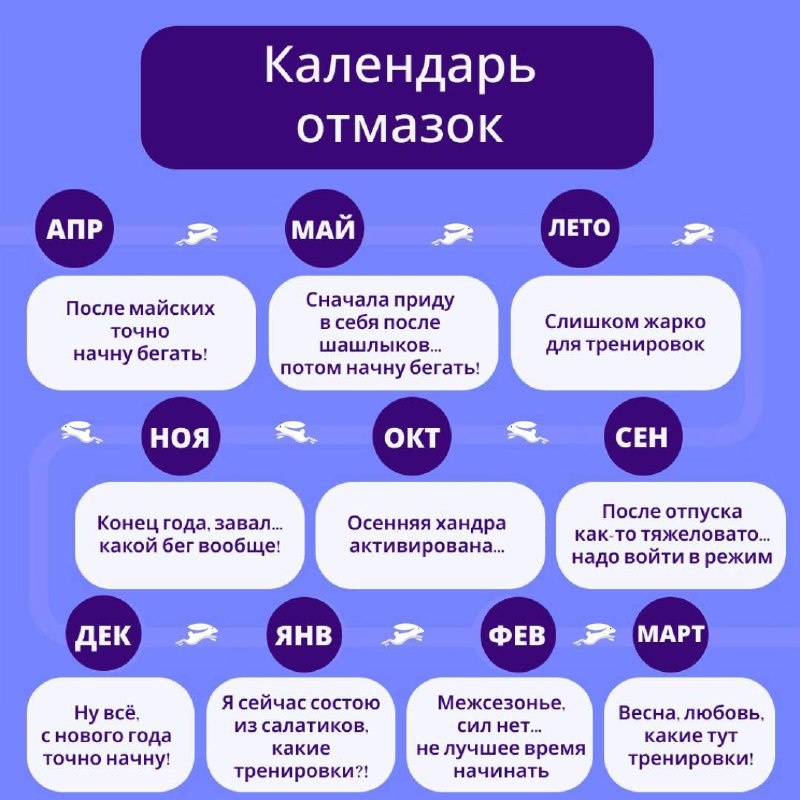 Шутим, конечно. Мы тут собрали для вас календарь отмазок на год вперед 😎 Узнали себя хоть в одном пункте? Ничего страшного — у всех бывает. Главное, чтобы это не растянулось на весь год 😉 Мы-то с вами знаем, что начать можно в любой момент, главное сделать первый шаг 💜 А какой у вас любимый месяц из календаря? 😅 Делитесь в комментариях 👇 У нас также есть каналы в ВК и MAX.