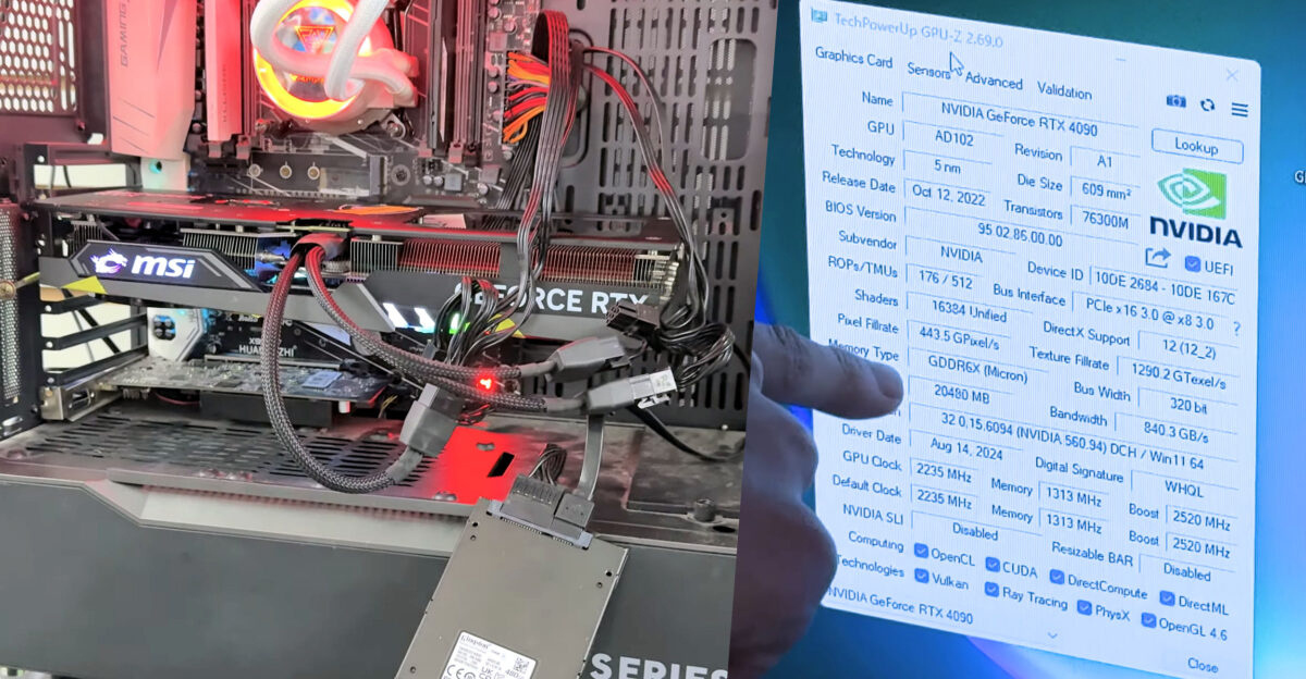 RTX 4090 с отключённым каналом памяти работает с 20 ГБ, также продемонстрирован тест BIOS с 48 ГБ. Мы получили информацию от Джефферсона Силвы (Sidnelson) и Пауло Гомеса — бразильской команды по ремонту GPU, известной своими модификациями памяти. Они утверждают, что восстановили две видеокарты GeForce RTX 4090 с разными неисправностями. По их словам, одна MSI RTX 4090 получила повреждение печатной платы (PCB), предположительно из-за изгиба или удара. Чтобы вернуть карту в рабочее состояние, они использовали модифицированный BIOS, отключающий один канал памяти. В результате получилась рабочая RTX 4090 с 20 ГБ видеопамяти вместо исходных 24 ГБ. Карты, подвергшиеся изгибу, часто получают структурные повреждения, приводящие к отключению модулей памяти или разрыву дорожек PCB, поэтому такой мод стал быстрым способом «оживить» устройство, которое иначе считалось бы неремонтопригодным. Они также отмечают, что BIOS с поддержкой 20 ГБ появился недавно и уже активно применяется при ремонте видео