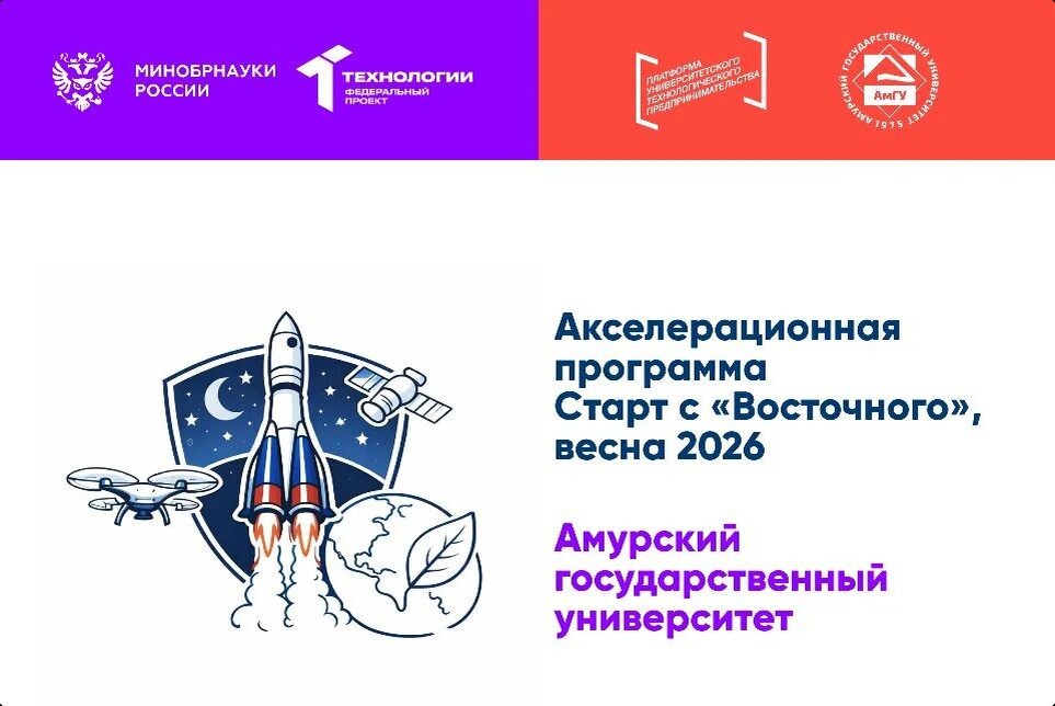 Авторы наиболее перспективных решений получат стажировки или инвестиции. С 4 апреля по 15 июня в Амурском государственном университете пройдет бесплатная акселерационная программа «Старт с «Восточного», весна 2026». Мероприятие организовано в рамках федерального проекта «Технологии» при грантовой поддержке Национальной технологической инициативы (НТИ). Программа ориентирована на студентов, молодых исследователей и всех, кто хочет создать технологический стартап в одной из трех тематических областей: космические технологии и геоинформационные системы; беспилотные авиационные системы (БАС) и интеллектуальные транспортные системы; технологии для экологического мониторинга и климатической адаптации. Присоединиться можно с собственной идеей, без идеи (ее помогут сгенерировать) или в составе существующей команды. Первое событие пройдет 4 апреля в ЦОПП (Амурский государственный университет). Начало - в 10:00. Это масштабная сессия по генерации идей под руководством федерального эксперта Андре