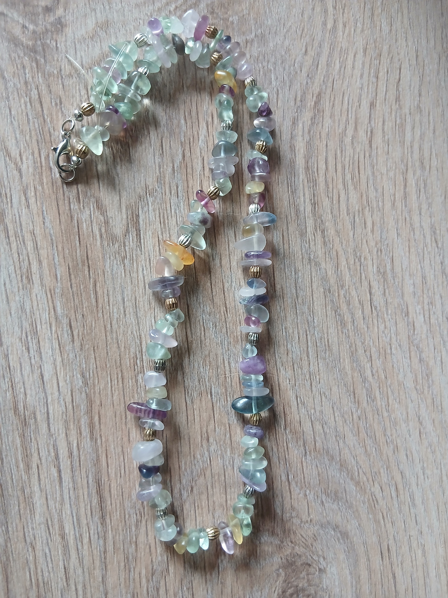 Здравствуйте, любят у нас все переделывать, вот на днях ввели новый гост на хлеб, если учесть, что все это носит рекомендательный характер и можно ваять по ту, то какой смысл переделывать? То ли дело я, я переделываю со смыслом, с толком и расстановкой. В том году я сделала бусы из флюорита. Камень хорош сам по себе даже в виде осколков). А на днях переделала их. Добавила яркого золота, замочек теперь спереди и на нем мотается мотылёк. Мотылька купила в Озоне, там такой выбор бабочек был, но мне подошёл только такой светлый зеленый с бирюзой. Пожалуй куплю еще яркую бабочку, а потом что-нибудь соображу) А эти мне уже нравятся год ( одни из моих первых ) и переделывать пока не собираюсь, что странно для меня. Это я попросила сфоткать, чтобы бусы были видны. Но они действительно видны, тут не поспоришь. Кстати, косуха и джинсы куплены по 100 рублей, футболка немного дороже, не на максимальной скидке брала, она вроде как велюровая из хлопка и синтетики). Обзор с распродажи "Эксклюзива",