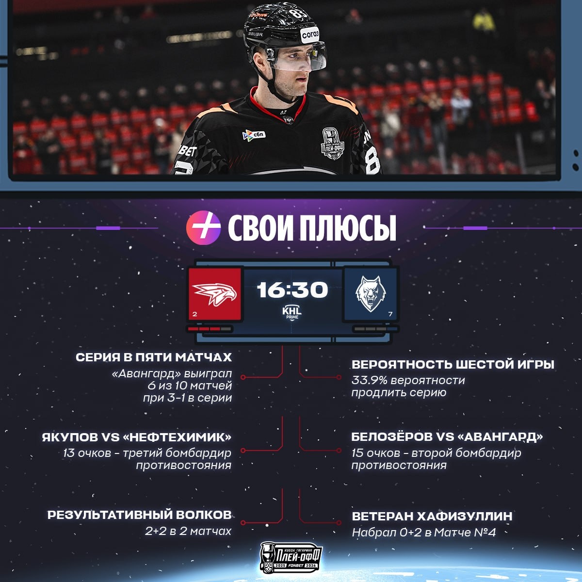 Результативный Волков 🦅, надежный Смолин 🦊, фактор Радулова 🚂 — у каждой команды есть Свои Плюсы. На какие стоит обратить внимание сегодня?