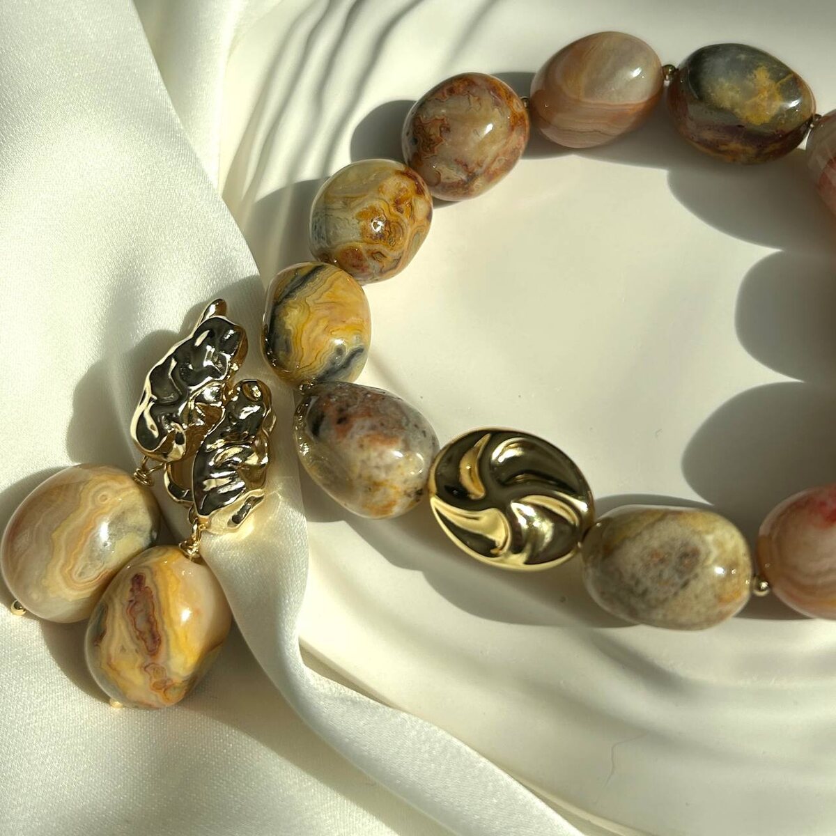 ☺️ Шикарный кружевной Агат покорил меня с первого взгляда☺️🥰 Каждая бусина уникальна, со своим неповторимым узором. 🏷️браслет -2890р 🏷️серьги -2090р Заказать можно на сайте По всем вопросом пишите @braslet_spas_manager