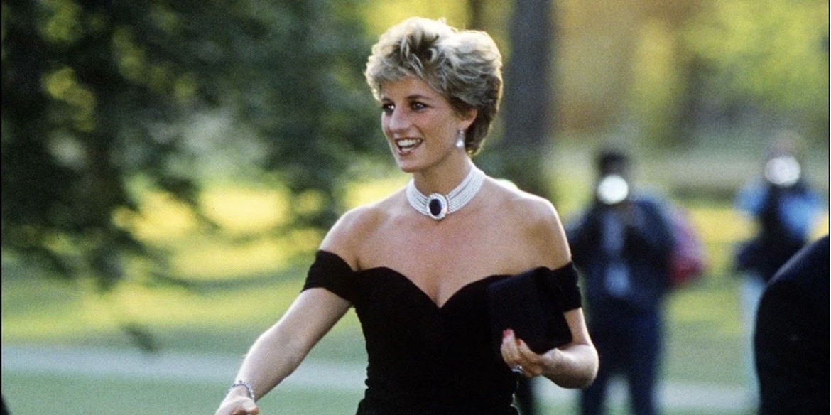На приём в галерею Серпентайн в Лондоне Диана надела короткое чёрное платье с открытыми плечами от Christina Stambolian. У наряда была интересная предыстория:
