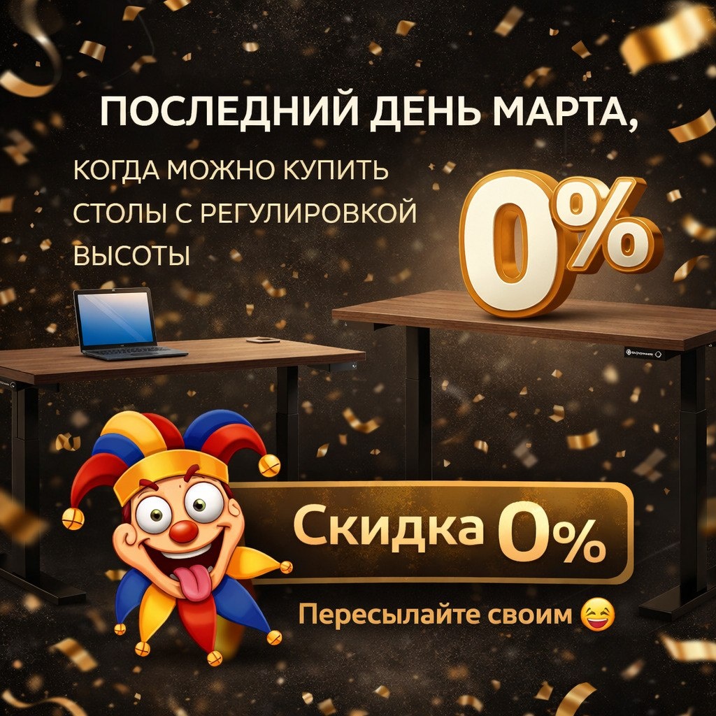 Сегодня последний день марта, когда можно купить столы с регулировкой высоты с дисконтом 0%. Пересылайте своим
