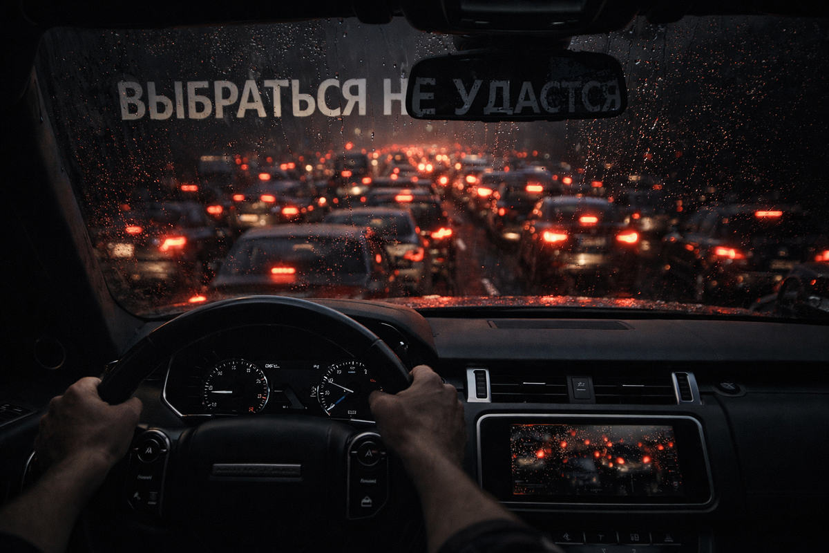 А через два часа они превращаются в заложников бесконечной реки из металла и мигающих красных габаритов.