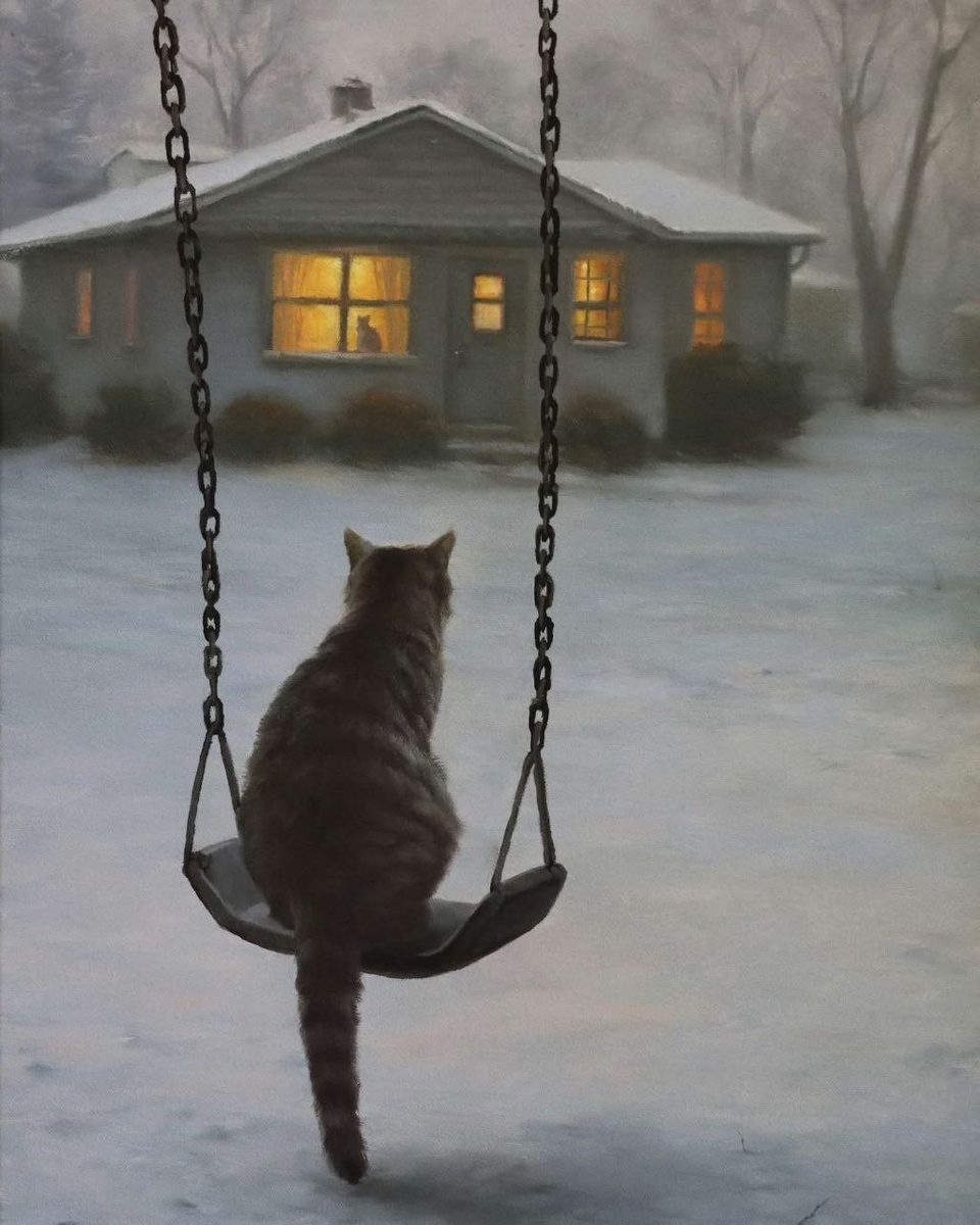 пишет животных, которые слишком похожи на нас. Кинореализм, тонкая ирония и океан эмоций в одном холсте.