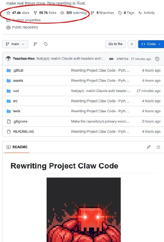 На GitHub случилась почти киношная история. Вирусный форк утекшего Claude Code мог исчезнуть в любой момент: предыдущие зеркала сносили почти сразу, а риск DMCA висел над репозиторием с первой минуты. Но вместо того чтобы просто прятать архив, автор пошёл другим путём. Он использовал OpenAI Codex и за ночь переписал весь исходник с нуля: огромную TypeScript-кодовую базу примерно на 512 тысяч строк превратил в clean-room реализацию на Python. Без копирования оригинальных строк, но с сохранением логики, инструментов и поведения агента. И вот тут началось самое интересное. Проект из юридической мины превратился в "безопасную" open-source-версию, которую сообщество тут же понесло в звёзды. 47 тысяч stars за 5 часов - это уже не просто хайп, а сигнал, насколько людям нужен такой инструмент. Самое показательное в этой истории даже не скорость роста. А то, как меняется сама разработка. Раньше утечка кода означала либо архив, либо бан, либо бесконечные споры. Теперь достаточно сильной модел