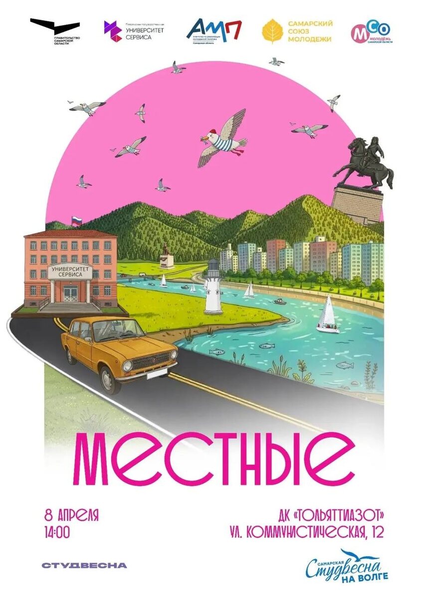 🌆 8 апреля состоится главное событие этой весны - гала-концерт Студенческой весны–2026 Университета сервиса. Перемотаем «плёнку» истории города и проживём её заново: от первых указов Василия Татищева до индустриального ритма Тольятти, Грушинского фестиваля и сегодняшнего дня, в котором каждый решает для себя, что значит быть «местным». В программе 12 номеров: хореография, художественное слово, перформанс и вокал. На сцене студенты ПВГУС, которые расскажут о городе честно и живо. 🗓️ 8 апреля 📍ДК «ТольяттиАзот» (ул. Коммунистическая, 12) 🕑 Начало в 14:00 🎟 Вход свободный