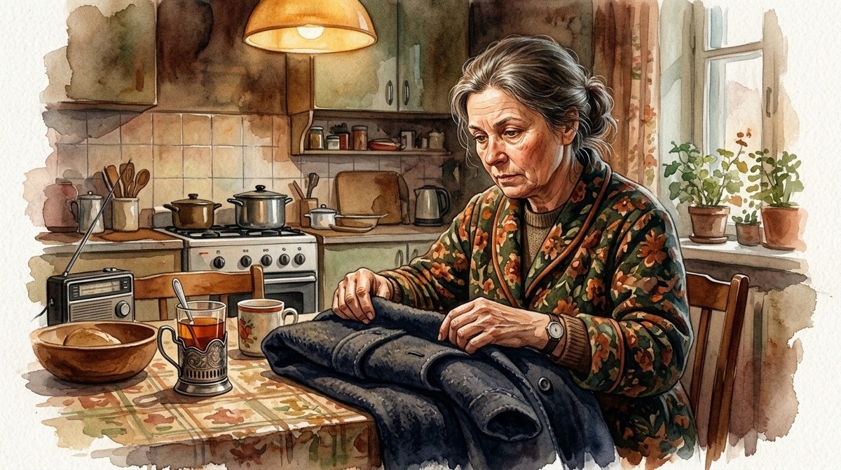 Она не плакала. Просто сидела и слушала, как тихо в квартире без него, как тикают часы над холодильником, как где-то далеко играет музыка. И думала: вот оно. Вот зачем это всё: и часы над машинкой, и нитки, и запас в подоле. Не чтобы красиво. А чтобы тепло. Чтобы он надел это пальто, и там, в том холоде, было что-то своё, тёплое, из дома.