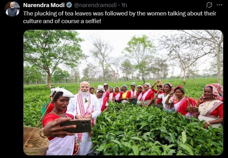 India's PM Modi posts a photo with women plucking tea leaves and 'talking about their culture