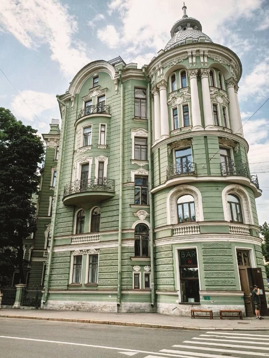 🖤 Один из самых эффектных и при этом недооценённых особняков Петроградской стороны. Построенный в начале XX века для братьев-лесопромышленников Фёдора и Николая Колобовых, он сразу выделился на фоне окружающей застройки: угловая башня-ротонда, пышный декор в стиле необарокко и выразительные атланты создают почти театральный образ. Дом интересен не только фасадом, но и планировкой: его корпуса образуют треугольник, а вход обрамляют эркеры, «поддерживаемые» скульптурными фигурами. Лепнина, балконы, колонны и лоджии делают здание настоящим архитектурным аттракционом. Внутри когда-то располагались просторные квартиры для обеспеченных жильцов, а сегодня дом узнают и по кино – он появлялся, например, в сериале «Бандитский Петербург». 📍Ул Ленина 8