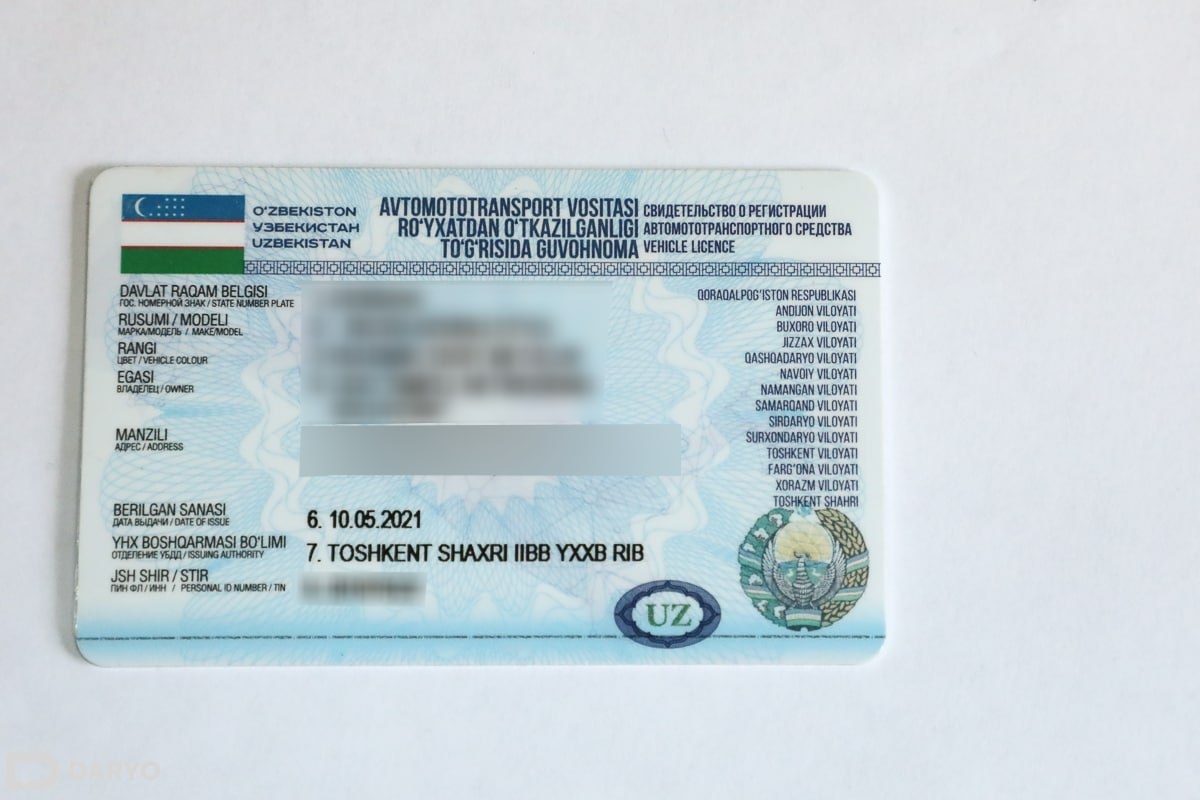 O‘zbekistonda avtomototransport vositasini ro‘yxatdan o‘tkazish haqidagi guvohnoma 5 yil muddatga rasmiylashtirilishi belgilandi