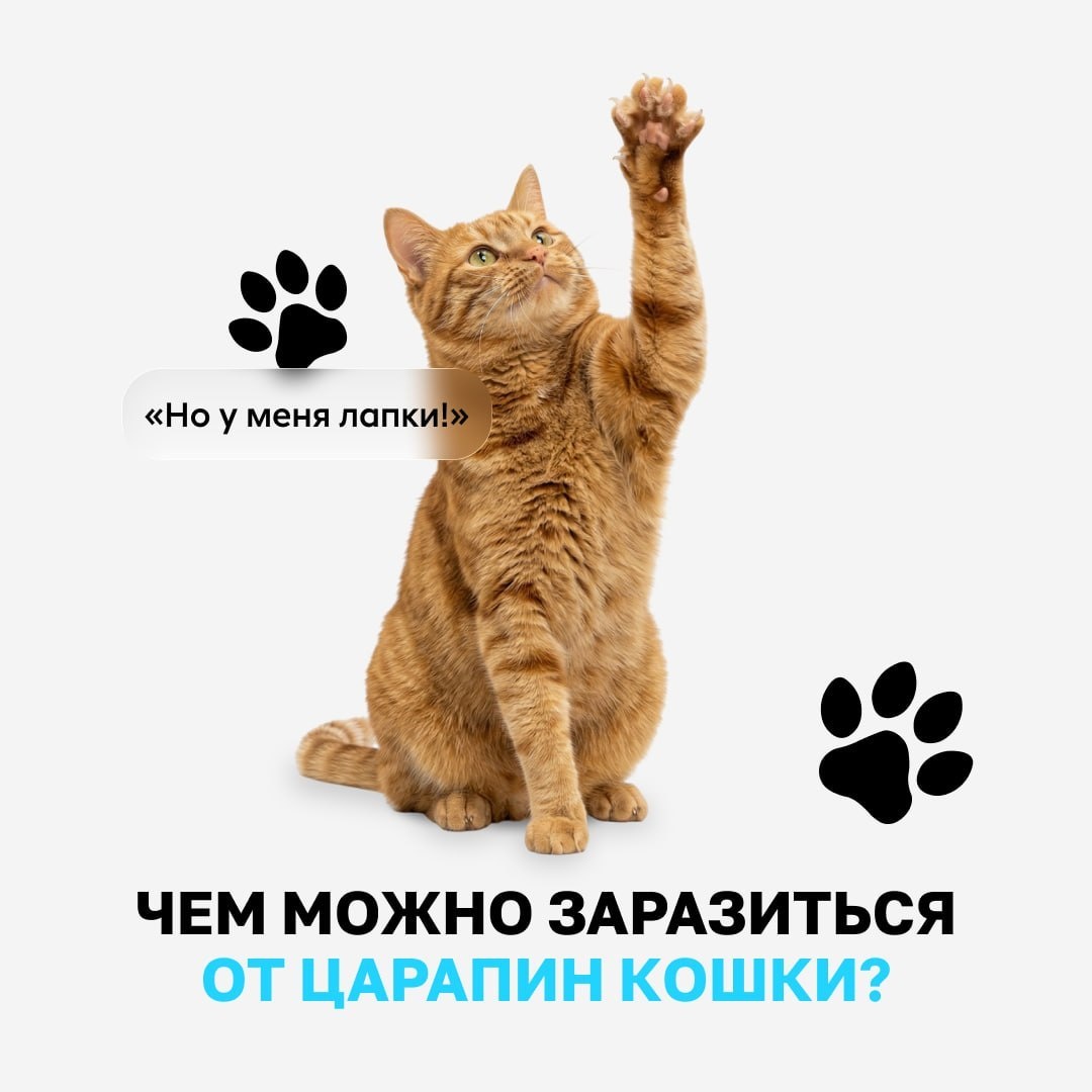 ! Если после игры с кошкой место укуса или царапины припухло, а вы чувствуете слабость, возможно, вы столкнулись с бартонеллезом («болезнью кошачьих царапин») Кошки могут быть переносчиками бактерий, даже если никогда не выходят на улицу. Сами питомцы обычно не болеют, а вот у человека инфекция может дать осложнения Симптомы, которые нельзя игнорировать (проявляются на 3–10 день): 🔹 на месте царапины появилось пятнышко или прыщик 🔹 увеличились и болят ближайшие лимфоузлы 🔹 болит голова, поднялась температура, ощущается упадок сил Если заметили симптомы, запишитесь к врачу 1️⃣ Проверьте питомца на наличие блох. Насекомые могут попасть в дом на вашей одежде или обуви. 2️⃣ Не позволяйте животному глубоко кусать или царапать вас. 3️⃣ Просто подождите. Организм кошки обычно сам справляется с этими бактериями. Если состояние питомца вызывает тревогу, покажите его ветеринару. Соблюдайте гигиену, следите за пушистыми, и пусть ваше общение приносит только радость