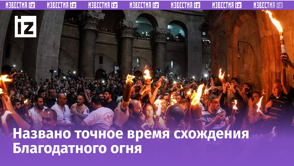 Благодатный огонь — одно из самых почитаемых чудес в христианском мире, которое ежегодно происходит в Великую субботу накануне Пасхи в храме Гроба Господня в Иерусалиме. В 2026 году это событие состоится 11 апреля. Подробнее - в материале «Известий». Накануне церемонии в Кувуклии — часовне, возведенной над местом погребения Иисуса Христа, — погасили свечи. Погребальное ложе Господа укрыли ватой, а часовню запечатали местные полицейские. Сама церемония начинается днем. Иерусалимский патриарх и священнослужители преодолевают маршрут последнего дня Иисуса на Земле, после чего процессия трижды обходит Кувуклию. Перед входом в Кувуклию патриарх проходит проверку на отсутствие источников огня. После этого двери часовни запечатываются и начинается молитва о ниспослании Благодатного огня. Время ожидания схождения огня может варьироваться от нескольких минут до нескольких часов. Когда огонь сходит, патриарх зажигает от него свечи при помощи ваты и выносит их к верующим. Считается, что в первы