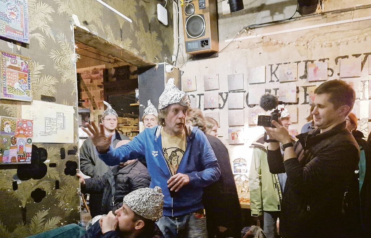 Существуют ли НЛО? Работает ли пси-воздействие, и если да – насколько надежно защищает от него ношение на голове шапочки из фольги? 29 марта в арт-пространстве «Буфет» состоялось событие, удивительное даже для «Буфета». Журналист, художник, путешественник, философ и исследователь Константин Гусев представил персональную выставку «Вредные излучения: история болезни». На пересечении истинно народных жанров, лубка и хипповского плаката, он создал авторское художественное исследование о влиянии социальных фобий на жизнь общества. Исследование воплощено в форме цикла ярких, крупноформатных графических работ, наполненных узнаваемыми символами и фразами, подсмотренными и подслушанными художником на улицах и в общественных местах. Как отмечает Константин, данный цикл представляет собой документальные свидетельства потерпевших от пси-воздействий, которые он кропотливо собирал более 20 лет. Старожилы могут вспомнить увлечение уфологией и поиском доказательств существования НЛО – но, видно, инопл