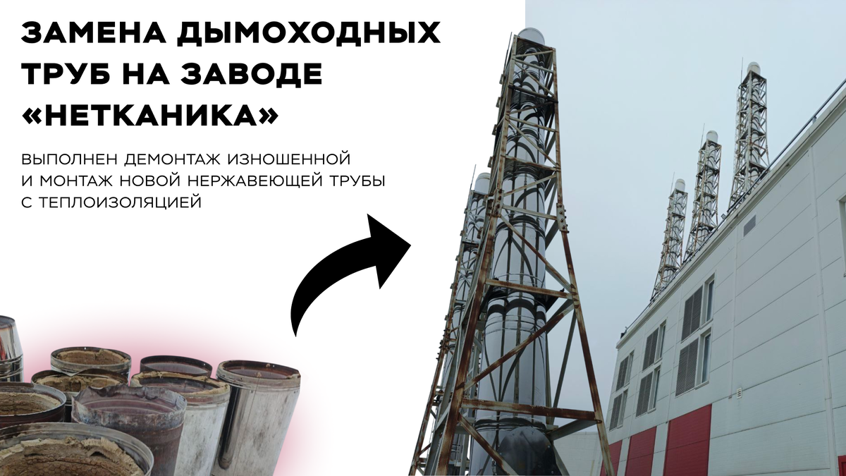 Замена дымоходных труб на производственном предприятии «Нетканика»