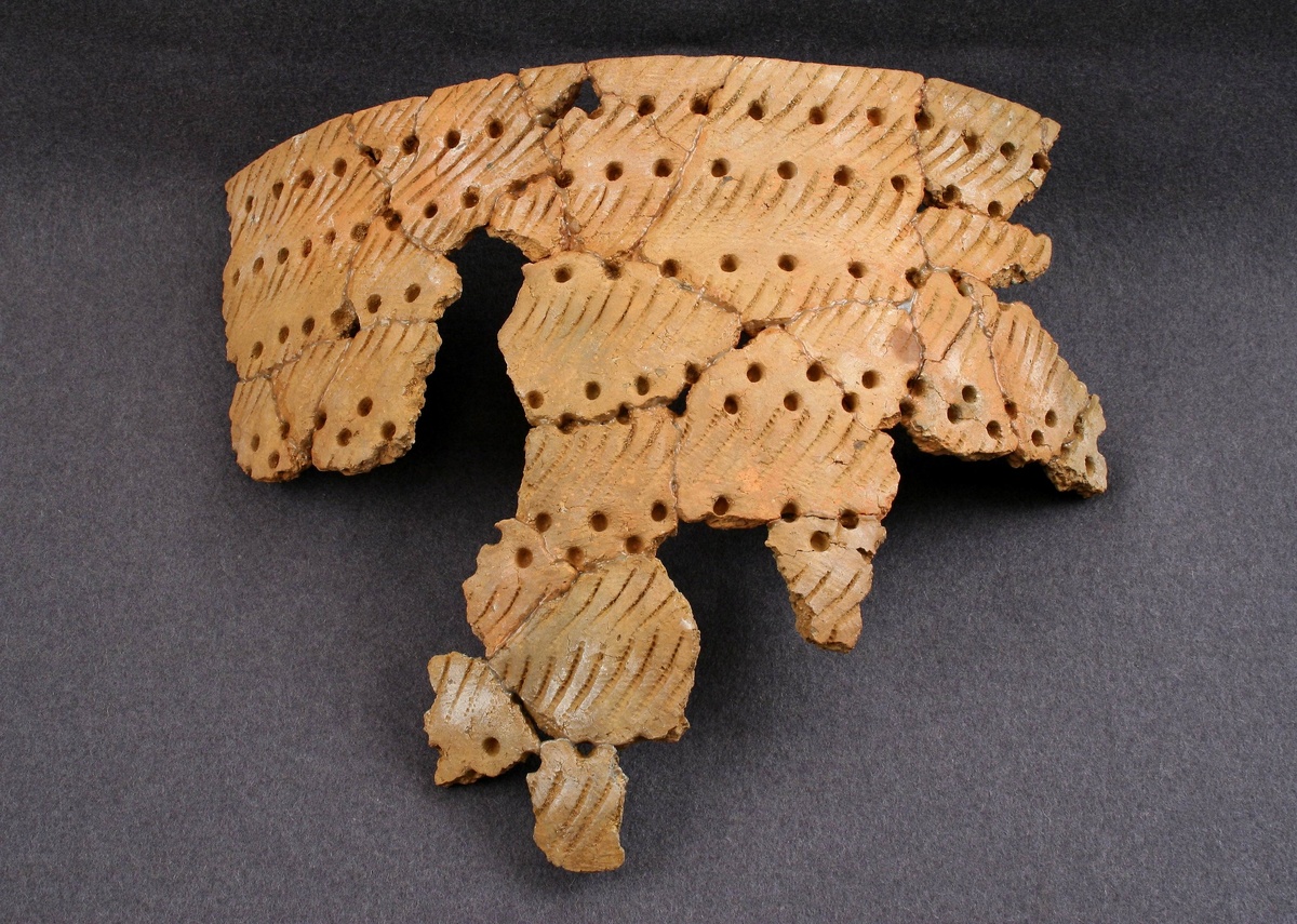 Музей «Кижи» продолжает рубрику «Музейный предмет — в интернет». В фонде археологии хранится коллекция предметов эпохи позднего неолита. При раскопках 2001–2002 годов в заливе Вожмариха нашли множество фрагментов древней керамики, некоторые сосуды удалось восстановить. На фото — крупный фрагмент сосуда гребенчато-ямочной керамики. Характерный узор: горизонтальные пояса из наклонных отпечатков гребенчатого штампа чередуются с рядами округлых ямок. Такая посуда была распространена в Обонежье в конце IV — начале III тысячелетия до нашей эры. Диаметр горловины сосуда — около полуметра. Изготовлен лепным способом, без гончарного круга. Экспонат помогает ученым изучать древнее гончарное ремесло в Карелии.