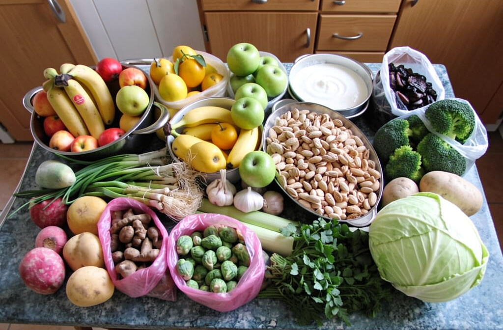 - Свежие фрукты и овощи: в любом виде – целые, нарезанные, в салатах.