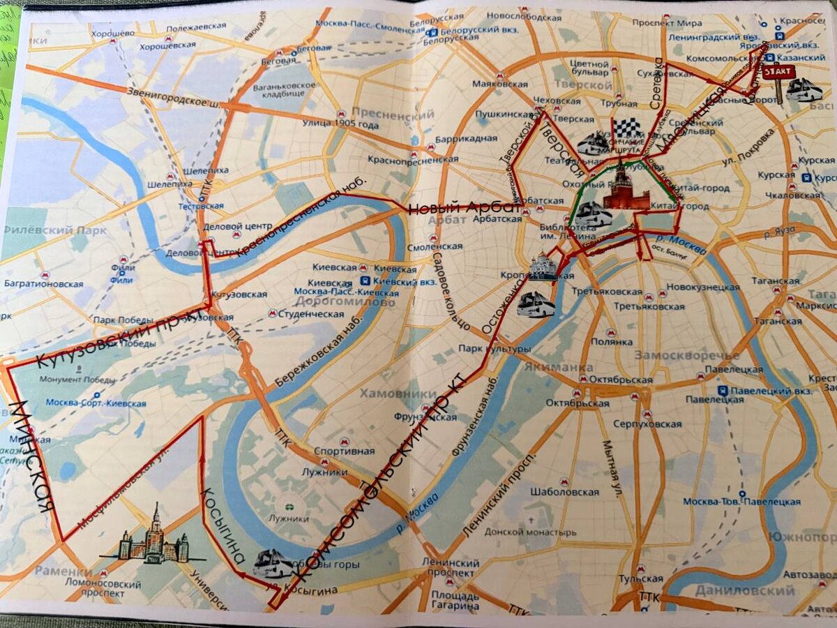 ? Часть третья. Исходи пешком - молодым шажком Всё привольное семихолмие… Это прям про нас, экскурсоводов, Марина Ивановна написала )) Без лишних слов - просто посмотрите на карту (на фото): ✅Всё, что отмечено красным цветом, и немного зелёным - мы прошли пешком! Это не первоапрельская шутка. 🀄️ И не просто прошли, а выучили всё обо всех объектах показа, которые встречали на пути: памятники, здания, храмы, площади и скверы, мосты и эстакады, имена и даты, исторические факты и городские легенды и даже статистические данные 📈 Всё, что может понадобиться для автобусной обзорной экскурсии, по правилам проведения которой, экскурсовод не должен молчать! даже если ваш автобус стоит в глухой многочасовой пробке 🍾 На это нам потребовалось почти полгода. Весь маршрут был разбит на относительно короткие участки. Выходили мы раз в неделю и каждый проход занимал по 5-6 часов. Шли мы и в снег и в дождь, и в жару и в стужу… не могло произойти ничего, чтобы нас остановило 🏕 Весь путь нам