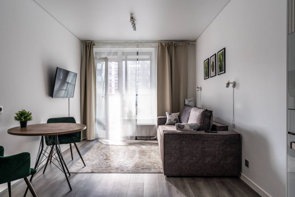 — подключили и настроили технику Главная цель была простой: создать интерьер, который выдержит активную эксплуатацию и не потеряет внешний вид. Прошло полтора года. Квартира всё это время сдавалась без простоя. Но недавно мы узнали, что в квартире меняются жильцы, и решили воспользоваться возможностью — посмотреть, как наш проект выглядит спустя время. Результат оказался вполне ожидаемым.. 1. Мебель сохранила внешний вид - без заметных следов износа, будто её установили совсем недавно. 2. Кухня в отличном состоянии, без сколов, потертостей и «ус