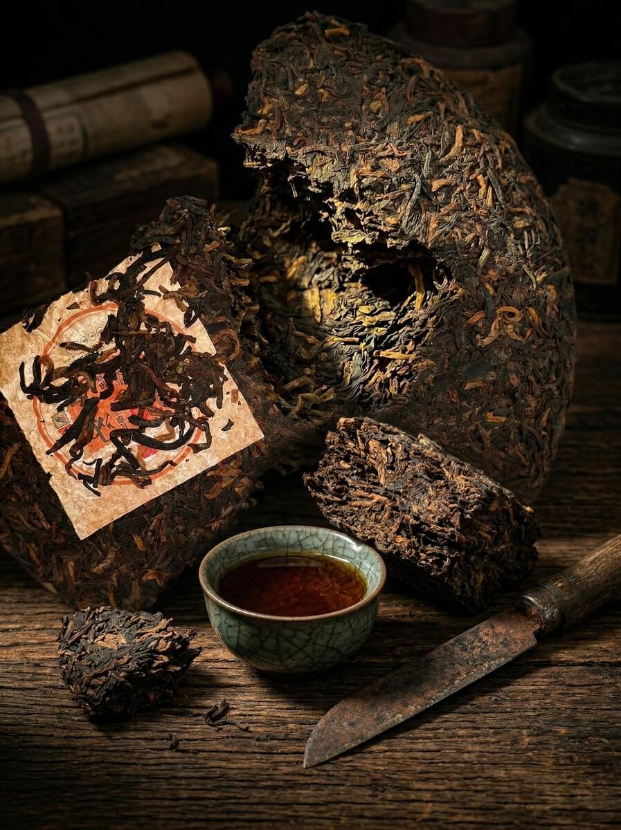 Вся магия выдержанного пуэра (Лао Ча). Приветствую, друзья. 🍂 Мы часто говорим о чае как о моменте «здесь и сейчас». Но есть категория чая, которая является живым порталом в прошлое. Это выдержанный пуэр, или Лао Ча (老茶) — «старый чай». Многие знают, что пуэр можно и нужно хранить. Но в чем именно заключается магия времени? Почему блин, пролежавший 10, 15 или 20 лет, ценится в разы дороже своего молодого собрата? Давайте разберемся в преимуществах выдержанного пуэра. 1. Трансформация Вкуса: От дерзости к мудрости Молодой Шу или Шэн Пуэр часто бывает ярким, напористым, иногда с резкими нотами. Время — лучший мастер, который сглаживает все острые углы. Уходит горечь и терпкость, уступая место глубокой, обволакивающей сладости. Профиль вкуса становится невероятно сложным: на смену простым древесным или земляным нотам приходят оттенки старого дерева, камфоры, сушеных фиников, горького шоколада, орехов и даже лекарственных трав. Это вкус, который хочется разгадывать. 2. Состояние (Ча