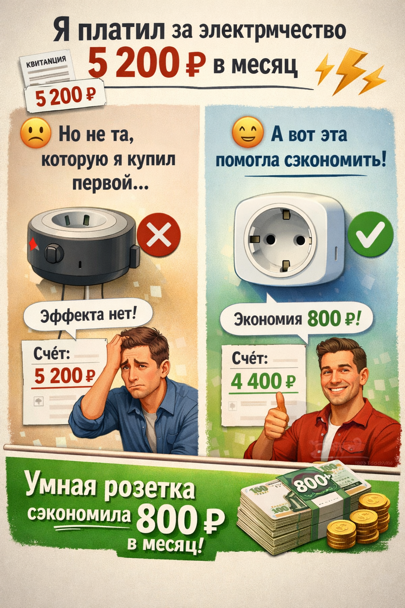 Друг посоветовал умные розетки с мониторингом потребления. Я полез на Ozon, увидел разброс цен от 400 до 3 500 рублей и завис. Купил первую попавшуюся за 1 200 — и пожалел. За следующие три месяца я перепробовал пять разных моделей, разобрался что к чему, и теперь готов рассказать честно: какая стоит своих денег, какая разочаровала, и почему самая дешёвая оказалась не худшим вариантом.