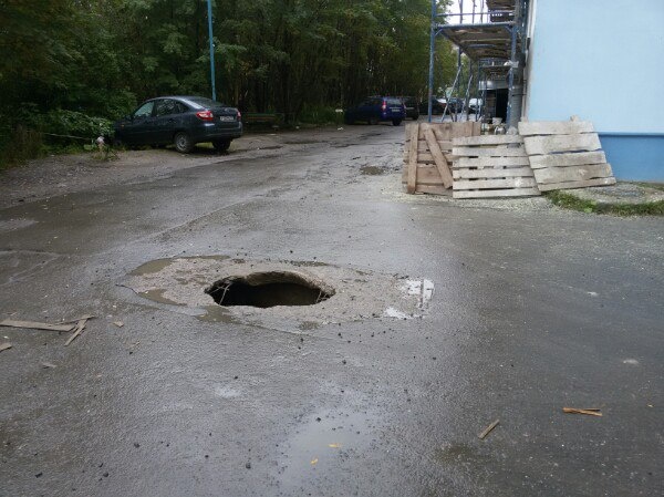 Вот такие ямы по городу... очень приятно заезжать домой, прям то, что нужно для женщины за рулём!..