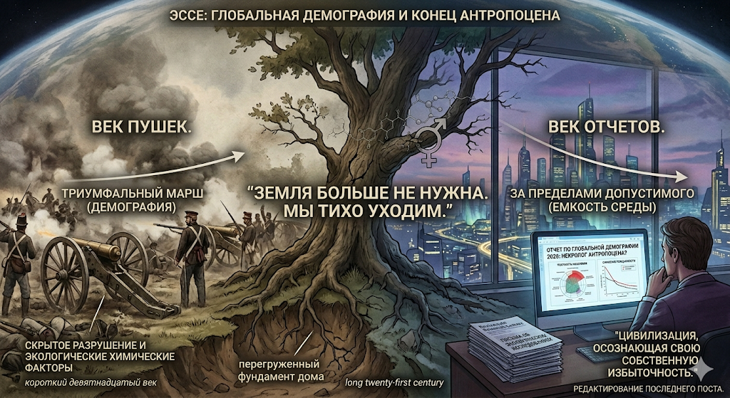 Текст доклада 2026 года лишен паники, он просто перечисляет: границы пройдены, емкость исчерпана, фертильность падает. Это похоже на отчет интенданта перед решающим сражением, который сообщает, что порох отсырел, а лошади пали. Историк внутри меня видит здесь конец линейного прогресса. Мы больше не растем вверх, мы расплываемся вширь, теряя плотность и смысл.