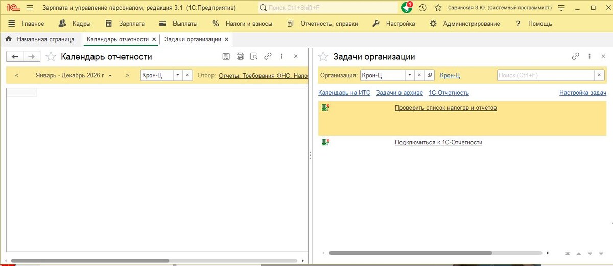 Непривычно видеть задачи и календарь отчетности в ЗУПе, но с релиза 3.1.37.14 у нас есть такой удобный функционал.