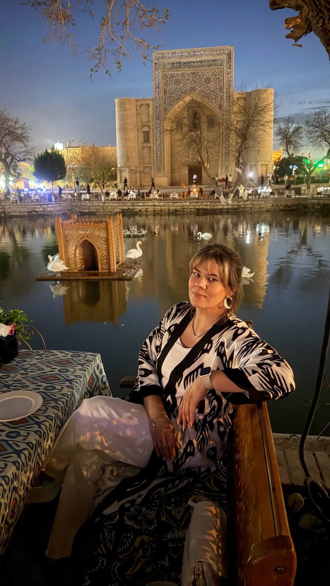 Бухара: места, которые останутся со мной 🦢 Ляби-Хауз Душа современной Бухары. Единственный сохранившийся бассейн (хауз) в городе. Вековые чинары, чайханы под открытым небом и знаменитый Ходжа Насреддин на ослике. Идеальное место, чтобы поужинать, полюбоваться на проплывающих мимо лебедей и просто расслабиться. Стопроцентная романтика. Бухарская, неспешная, настоящая. 🕌 Пои Калян Говорят, минарет Калян - это единственное, что Чингисхан не разрушил. Он так высоко поднял голову, что у него упала шапка. И он сказал: «Наверное, Аллах любит эту башню». И оставил. Грандиозная мечеть и медресе Мири-Араб создают площадь, от которой захватывает дух. Вечерняя подсветка добавляет особого восточного шарма. Минарет, мечеть, медресе — всё это вдруг становится золотым, синим, красным. Каким-то волшебным! 🕍 Чор-Минор Это не мечеть и не медресе, а ее ворота. Четыре башни-минарета (отсюда и название — «Четыре минарета») — это не просто архитектурный каприз. Говорят, каждая из четырёх башен си
