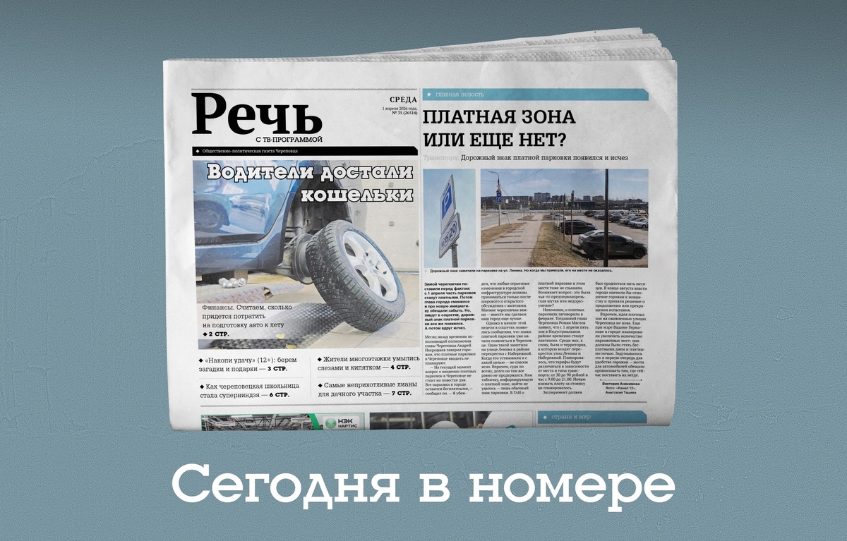 » 🔹 А был ли знак? Платная парковка на Ленина появилась и исчезла. 🔹 Готовим автомобиль к лету: что почем и куда бесплатно сдать старые покрышки. 🔹 «Умываемся кипятком и слезами»: жители дома в Заречье надолго остались без холодной воды. 🔹 12-летняя суперниндзя живет в Череповце и снялась в шоу на СТС. 😉 А еще это традиционный для 1 апреля номер «Речи». И, значит, в нем есть шуточные новости. Первому правильно назвавшему их дарим подарок. Настоящий. Адреса точек бесплатного распространения: https://35media.ru/where_newspaper/ Электронные версии газет: https://35media.ru/paper/rech Речь ВКонтакте | Речь в МАКС | Речь в ОК | Речь в Дзене | 35MEDIA в МАКС