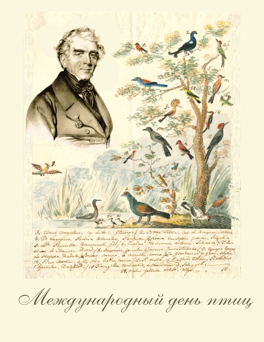 🦜 Каждый год в этот день — 1 апреля — мы отмечаем Международный день птиц, посвященный красоте, разнообразию и важности пернатых друзей нашей планеты. Птицы не только радуют глаз своими яркими окрасками и трелями, но и играют важную роль в экосистемах — опылении растений, контроле популяций насекомых и распространении семян. 📝 В такой день стоит упомянуть Константина Тизенгауза — известного орнитолога, путешественника и натуралиста, который внес выдающийся вклад в изучение птиц не только Беларуси, но и мира. Константин Тизенгауз – основоположник беларусского бёрдвотчинга. Увлечение орнитологией появилось у него во время путешествия в Париж. Позже в штате его имения появился специальный помощник, делавший чучела птиц. Коллекция чучел была поистине огромной: около 3 000 экземпляров. Помимо орнитологии, Константин Тизенгауз еще и отлично рисовал и играл на музыкальных инструментах. Изображение птиц выше вышло из-под его руки. #орнитология #птицыбеларуси #весна #поставыбудьсчастливзде