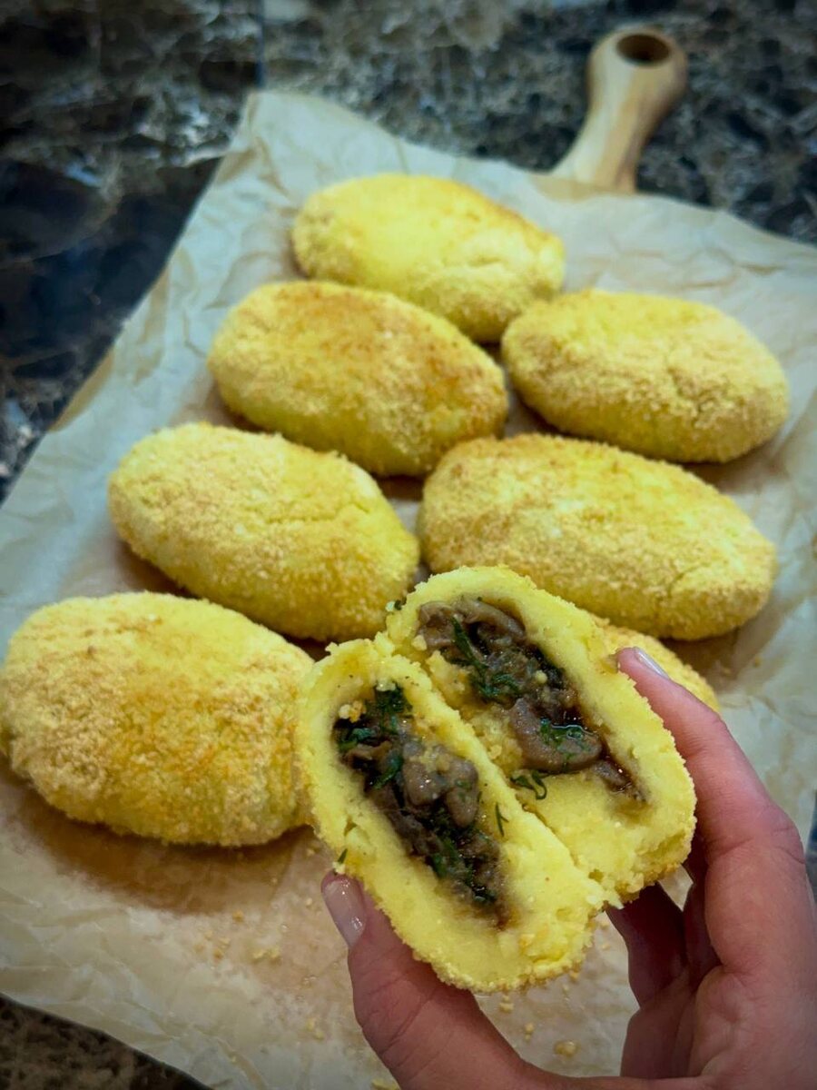 ! Делимся с вами рецептом Картофельных зраз с грибами 🍄🟫 🔷Ингредиенты: ▪️Картофель - 2 кг ▪️Соль, специи, зелень -по вкусу ▪️Мука -150 гр 🔹Начинка: ▪️Лук-1 шт ▪️Грибы-300 гр ▪️Соль, специи, зелень -по вкусу 🔷Способ приготовления: 🔹1)Картофель отварить до готовности. Из картофеля сделать пюре. Добавить соль, специи и муку, перемешать. 🔹2)Начинка: лук обжарить до золотистого цвета, добавить грибы, перемешать и обжарить минут 15. Добавить соль, специи, зелень. Начинку остудить. 🔹3)Сформировать зразы, выложить грибную начинку, обвалять в панировочных сухарях. Готовить 20 минут при 200 градусах. ⠀🔹Приятного аппетита