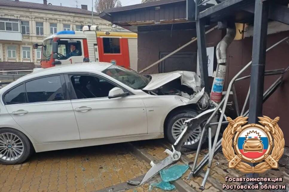 В центре Ростова водитель на иномарке потерял контроль и врезался в стену здания