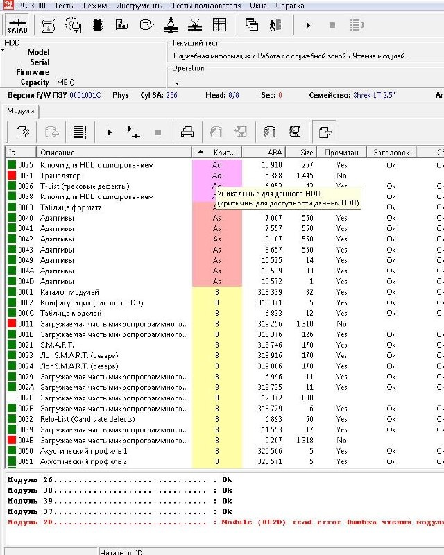 Частая причина – сбой в служебной микропрограмме ⠀ Что это? ⠀ Представьте, что диск – это завод. Микропрограмма – его главный инженер. Он дает инструкции для всех цехов ⠀ Хранится она в отдельной служебной зоне на тех же пластинах. Если эти инструкции повреждены – завод (диск) встаёт, хотя оборудование (механика) в порядке ⠀ Откуда берётся проблема? ⠀ 1. Нечитаемые сектора добрались до служебной зоны 2. Ошибка в самой прошивке (бывает даже у новых дисков) 3. Скачок напряжения (возможен другой внезапный обрыв питания), который «сбил» служебные модули ⠀ Как это проявляется? ⠀ Диск физически запускается, но не определяется в системе или показывает странный объём (например, 0 Мб). Специалист иногда на слух может уловить нетипичный звук инициализации головок ⠀ Как мы восстанавливаем данные? ⠀ Работаем на комплексе PC–3000. Аккуратно подменяем повреждённые модули микропрограммы на исправные ⠀ Важно: некоторые модули связаны с областью данных, они уникальны для каждого диска, их нельзя просто