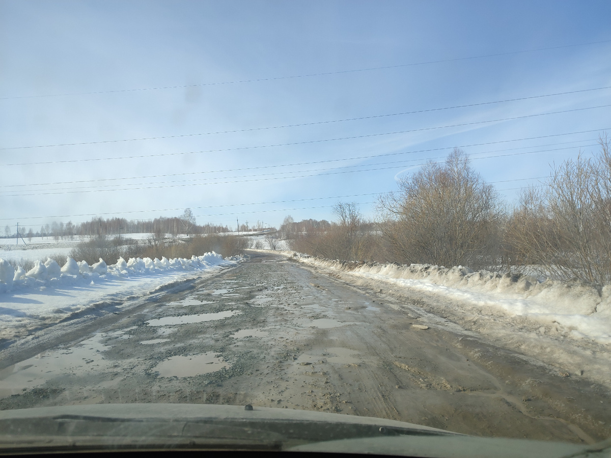Снег у нас с дорог сошёл, что где-то плюс, т.к. нет только гололёда и каши. Но где-то это и минус. Ездила до клиента вот по такой дороги(((