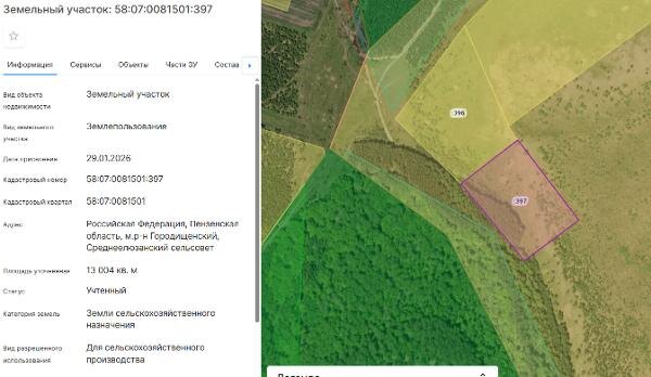(тринадцать тысяч четыре) кв. м., из категории земель - земли сельскохозяйственного назначения, с кадастровым номером 58:07:0081501:397, местоположение: Российская Федерация, Пензенская область, Городищенский район, Среднеелюзанский сельсовет, разрешенное использование земельного участка – для сельскохозяйственного производства. Канал: Госземля Пензенская область Область: обл Пензенская Район: м.р-н Городищенский Населенный пункт: с.п. Среднеелюзанский сельсовет Локация: Смотреть на карте ВРИ: Обеспечение сельскохозяйственного производства Кадастровый номер: 58:07:0081501:397 Кадастровая стоимость: - Вид сделки: Аренда Площадь: 13004 м² Начальная цена: 40650.00 руб. Дата завершения: 23.04.2026 Подробнее: ГИС ТОРГИ #госземля #земляотгосударства #земля #земельныйучасток #земельныеторги #торги #аукцион #арендаземли #аренда #пензенскаяобласть