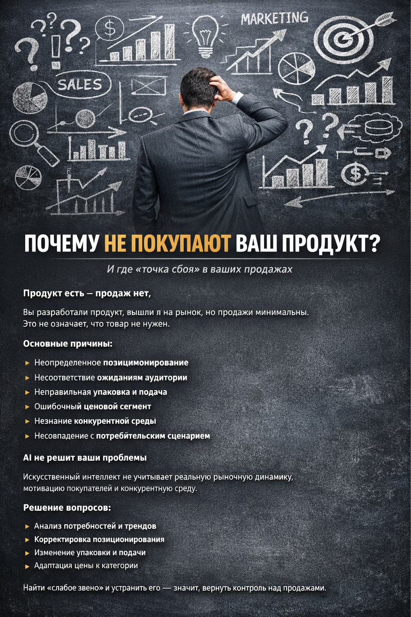 рынку это не нужно? В большинстве случаев — нет, это не так. Хорошая новость в том, что отсутствие продаж редко означает, что продукт не нужен, практически на любой товар есть свой покупатель и главная их задача встретиться в нужном месте и на правильных условиях.