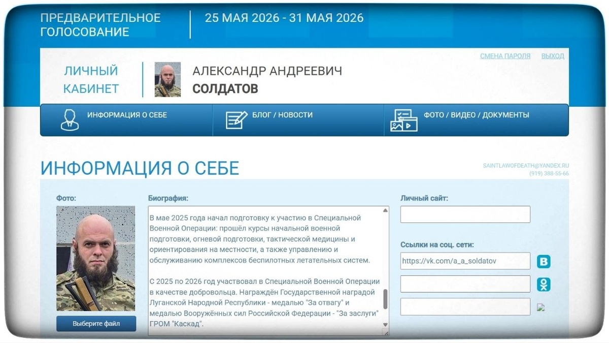 Боец отряда «За Отечество», главный редактор «Екатеринбург и мир» зарегистрирован на предварительном голосовании в органы государственной власти и местного самоуправления. Я, Солдатов Александр Андреевич, родился 14 июля 1990 года в городе Сухой Лог Свердловской области. В детский сад не ходил в связи со сложной, в государстве того времени, социальной ситуацией. В сентябре 1998 года пошёл в первый класс общеобразовательной школы №2 города Сухой Лог. В июне 2006 года окончил школу, а в сентябре того же года поступил на обучение в «Сухоложский многопрофильный техникум» на специальность электогазосварщик. В июне 2009 года сдал экзамены «Сухоложского многопрофильного техникума» и получил диплом электогазосварщика. В ноябре того же года в военном комиссариате Сухого Лога получил повестку и был направлен в город Североморск Мурманской области на прохождение срочной службы в войсках ВКС, ВВС, ПВО. В ноябре 2010 года был уволен в запас Вооружённых сил России в звании рядовой, после чего п